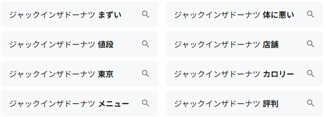「ジャックインザドーナツ」をネットで検索すると、「ジャックインザドーナツ まずい」と表示されます。