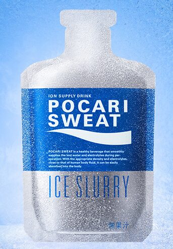 代表的な商品は、携帯しやすい「ポカリスエット アイススラリー(100gパウチ)」。