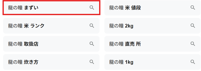 「龍の瞳」をネットで検索すると、「龍の瞳 まずい」と表示されます。
